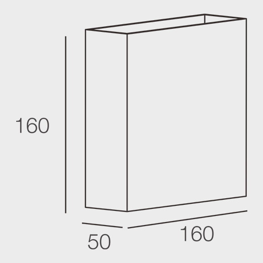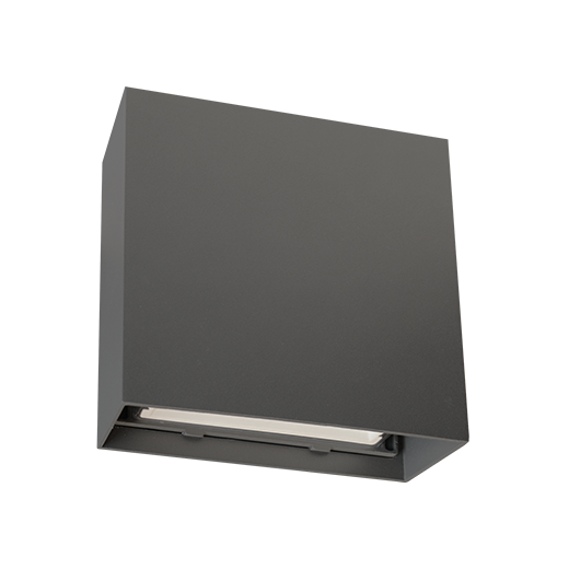 Wall Light square with light emission on two sides made of die-cast aluminium with integrated ON-OFF Driver; dark-grey powder-coating finish (RAL 7024); System Power 14W; primary: 220–240V ~50/60Hz; measurements 160mm x 50mm x 160mm; CCT 3000K with an System Luminous flux of 1400lm; decent color rendering at an index of CRI80; after a lifetime of 50000h L80B10 min. 80% of the luminous flux with energy efficient OSRAM LED Chips; 5 years warranty; beam characteristic with 120° beam angle; UGR<19; degree of housing protection IP65; light source replaceable by a qualified electrician; driver replaceable by a qualified electrician
