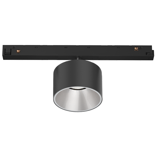 Single Spotlight Inset for 48V Low Voltage System; black finish (RAL 9005) and matt reflector; ON-OFF Driver; System Power 10W; measurements Ø72mm x 60mm; tool-free installation by “click-in/out” locking mechanism; CCT 2700K with a System luminous flux of 650lm; high color rendering at an index of CRI90; after a lifetime of 50000h L80B10 min. 80% of the luminous flux with energy efficient CITIZEN LED Chips; 5 years warranty; beam characteristic with 25° beam angle; lighting perfectly suitable for reading, writing as well as computer and control work with UGR<19; degree of housing protection IP20