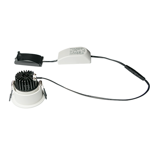 Round recessed ceiling downlight made of die-cast aluminium with white powder-coating finish (RAL 9016) and white reflector; Phase Dim Driver; System Power 11W; measurement Ø82mm; ceiling cutout of Ø70mm with a narrow mounting trim; luminaire’s height is 64mm; pivot max. 30°; CCT 2700K with a System Luminous Flux of 700lm; high color rendering at an index of CRI90; after a lifetime of 50000h L80B10 min. 80% of the luminous flux with energy efficient BRIDGELUX LED Chips; 5 years warranty; medium beam characteristic with 38° beam angle; lighting perfectly suitable for reading, writing as well as computer and control work with UGR<19; degree of housing protection IP44 on the visible part of the product one installed; light source replaceable by a qualified electrician; driver replaceable by a qualified electrician