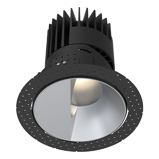 Rundes Einbau-Downlight aus Aluminium-Druckguss mit schwarz Pulverbeschichtung (RAL 9005) und matt Reflektor; LED 25W; Abmessung Ø150mm; Deckenausschnitt von Ø158mm mit schmalem Einbaurahmen; Deckenstärke 1-35mm; CCT 2700K mit einer Systemleistung von 1100lm; hohe Farbwiedergabe bei einem Index von CRI90; nach einer Lebensdauer von 50000h min. 80% des Lichtstroms mit energieeffizienten CITIZEN LED Chips; 5 Jahre Garantie; Wall Washer; Beleuchtung perfekt geeignet für eine breite Ausleuchtung von Wandflächen, um eine homogene Lichtverteilung zu ermöglichen; Gehäuseschutzart IP54; Leuchtmittel austauschbar durch eine Elektrofachkraft; Treiber austauschbar durch eine Elektrofachkraft