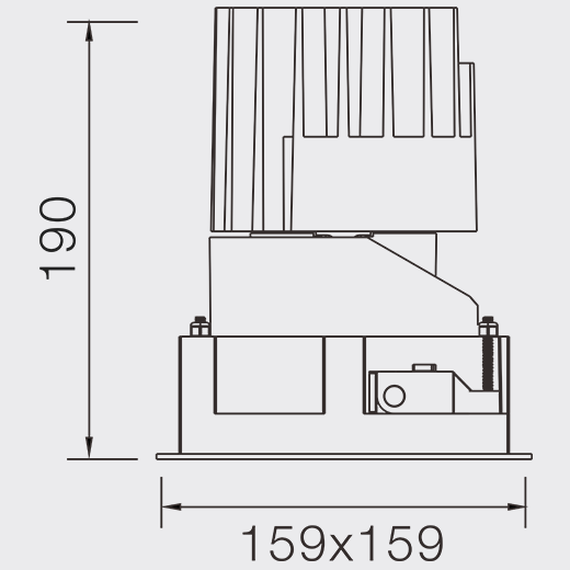 Quadratisches Deckeneinbaudownlight aus Aluminiumdruckguss mit schwarz Pulverbeschichtung (RAL 9005) und matt Reflektor; LED 25W; Maße 159mm x 159mm x 190mm; Deckenausschnitt von 147mm x 147mm mit schmalem Einbaurahmen; Deckenstärke 1-35mm; CCT 2700K mit einer Systemleistung von 1050lm; hohe Farbwiedergabe bei einem Index von CRI90; nach einer Lebensdauer von 50000h min. 80% des Lichtstroms mit energieeffizienten CITIZEN LED Chips; 5 Jahre Garantie; Wall Washer; Beleuchtung perfekt geeignet für eine breite Ausleuchtung von Wandflächen, um eine homogene Lichtverteilung zu ermöglichen; Gehäuseschutzart IP54; Leuchtmittel austauschbar durch eine Elektrofachkraft; Treiber austauschbar durch eine Elektrofachkraft