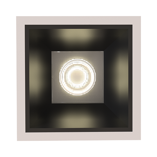 Deckeneinbauleuchte eckig aus Aluminiumdruckguss; Pulverbeschichtete weiße Oberfläche (RAL-Farbcode 9016) und schwarzer Reflektor; Systemleistung 26W; Größe 167mm x 167mm x 100mm; schmaler Montagerand bei einem Deckenausschnitt von 150mm x 150mm; Deckenstärke 1-25mm; Gewicht pro Leuchte beträgt ca. 700g; Lichtfarbe 3000K bei einem Systemlichtstrom von 2600lm; hohe Farbwiedergabe bei einem Index von CRI90; min. 80% des Lichtstromes nach 50000h L80B10 Lebensdauer mit energieeffizienten CITIZEN LED Chip; 5 Jahre Herstellergarantie; Abstrahlcharakteristik mit 70° Abstrahlwinkel; Beleuchtung perfekt zum Lesen, Schreiben sowie für Computer- und Kontrollarbeiten nach DIN EN 12464-1 (UGR<19); Schutzart des Gehäuses IP54; Lichtquelle durch Elektrofachkraft austauschbar; Treiber durch Elektrofachkraft austauschbar