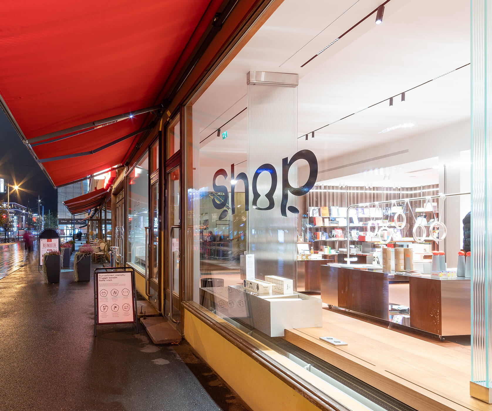 Die ML26 Akzentbeleuchtung sorgt über den Verkaufstischen des Amos Rex Merchandise Shops für eine angenehme Lichtstimmung ohne störende Blendungen für die Besucherinnen und Besucher. Die hohen lichttechnischen Eigenschaften der LED Leuchteinsätze sorgen zudem dafür, dass Strukturen der Antiquitäten und Gegenstände realitätsnah dargestellt werden.