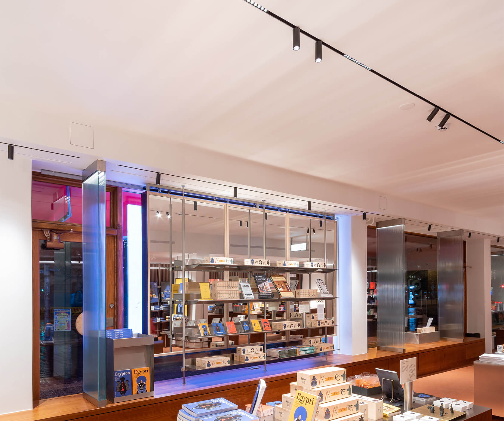 Das Museum mit dem Schwerpunkt Geschichte Ägyptens wurde mit unserem MODULINE 26 48V Low Voltage System ausgerüstet. Dank der minimalen Abmessung der Einbauschiene, fügt sich das System optimal in die Architektur ein und stellt zudem einen nahtlosen Übergang zwischen Schiene und Decke her.
