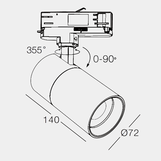 Stromschienenstrahler rund aus stranggepresstem Aluminium für 3-Phasen-Stromschienenstrahlern-System mit schwarz Pulverbeschichtung (RAL 9005) und schwarz Reflektor; EIN-AUS-Treiber; Systemleistung 15W; Abmessungen Stromschienenstrahler Ø72mm x 170mm; Drehung 355° und Schwenkbarkeit Max. 90°; CCT 2700K mit einem Systemlichtstrom von 1100lm; hohe Farbwiedergabe bei einem Index von CRI90; nach einer Lebensdauer von 50000h L80B10 min. 80% des Lichtstroms mit energieeffizienten CITIZEN LED Chips; 5 Jahre Garantie; Abstrahlcharakteristik mit 15° Abstrahlwinkel; Beleuchtung perfekt geeignet zum Lesen, Schreiben sowie für Computer- und Steuerungsarbeiten UGR<19; Gehäuseschutzart IP20
