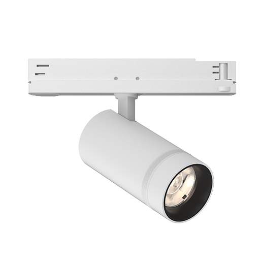 Stromschienenstrahler aus Aluminium Strangpressen; Pulverbeschichtete weiße Oberfläche (RAL-Farbcode 9016) und schwarzer Reflektor; LED 13W; Größe Ø72mm; Länge des Strahlers 140mm; Länge des Stromschienenadapters 255mm; Gewicht pro Leuchte beträgt ca. 660g; 355° dreh- und 90° schwenkbar; Lichtfarbe 3000K bei einem LED Output von 1600lm; mit DALI Dim-Treiber; gute Farbwiedergabe bei einem Index von CRI80; min. 80% des Lichtstromes nach 50000h Lebensdauer mit energieeffizienten CITIZEN LED Chip; 5 Jahre Herstellergarantie; einstellbare Abstrahlcharakteristik mit 18°-35° Abstrahlwinkel; Beleuchtung perfekt zum Lesen, Schreiben sowie für Computer- und Kontrollarbeiten nach DIN EN 12464-1 (UGR<19); Schutzart des Gehäuses nach DIN EN 60529 (IP20); Kompatibel mit GLOBAL/ POWERGEAR 3-Phasen Schienensystem