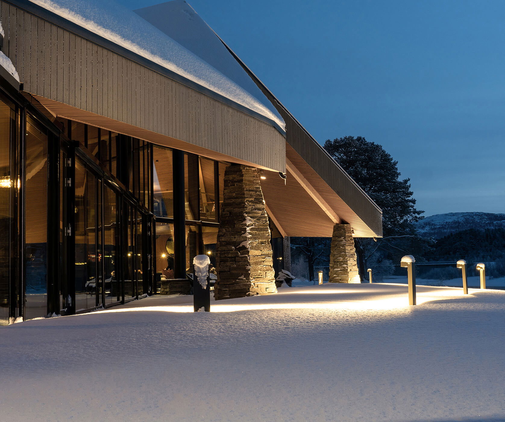 Located north of the Arctic Circle, directly on the Gammelbollo Fjord, the four-star Sorrisniva Hotel has been equipped with a new lighting concept. DURBAN bollard luminaires perfectly highlight the paths leading to the hotel’s entrance area. The combination of several successive luminaires provides a continuous, glare-free light band to illuminate the floor areas.
