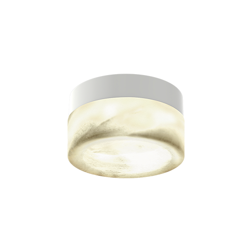 Aplique redondo fabricado en PC+Mármol con acabado blanco (RAL 9016); controlador de atenuación de fase; potencia del sistema 5 W; diámetro 130 mm; altura de la luminaria 70 mm; CCT conmutable (2700 K-3000 K) con un flujo luminoso del sistema de 245 lm; alto índice de reproducción cromática de CRI90; tras una vida útil de 50 000 h L80B10 mín. 80 % del flujo luminoso con chips LED de bajo consumo; 5 años de garantía; característica del haz con ángulo de 120°; grado de protección de la carcasa IP54, apto para aplicaciones en interiores y exteriores.