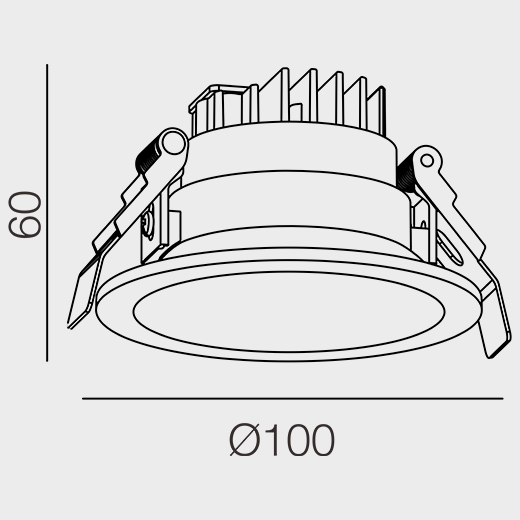 Downlight empotrable de techo redondo para iluminación exterior fabricado en aluminio fundido a presión con acabado de pintura en polvo negra (RAL 9005) y reflector negro; controlador ON-OFF; potencia del sistema 8W; primario 220-240V ~50/60Hz; medida Ø100mm; recorte de techo de Ø80-90mm con un embellecedor de montaje estrecho; la altura de la luminaria es de 60mm; grosor del techo 11-30mm; CCT 3000K con un flujo luminoso del sistema de 500lm; reproducción decente del color con un índice CRI80; tras una vida útil de 50000h L80B10 min. 80% del flujo luminoso con chips LED CREE de bajo consumo; 5 años de garantía; característica del haz con un ángulo de 30°; UGR<21; grado de protección de la carcasa IP65; fuente de luz sustituible por un electricista cualificado; controlador sustituible por un electricista cualificado.