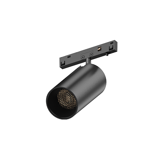Spot Light Inset para sistema de bajo voltaje de 24V; acabado en negro (RAL 9005); compatible con On-Off/ Phase Dim/ 1-10V Dim/ DALI Dim Remote 24VDC LED Driver; potencia del sistema 4W; medidas φ32mm; altura del perfil inset 68mm; instalación sin herramientas mediante mecanismo de bloqueo por clic; módulo luminoso orientable 90°; CCT 2700K con un flujo luminoso del sistema de 250lm; alta reproducción cromática con un índice CRI90; tras una vida útil de 50000h L80B10 min. 80% del flujo luminoso con chips LED de bajo consumo; 5 años de garantía; característica del haz con un ángulo de 24°; grado de protección de la carcasa IP20