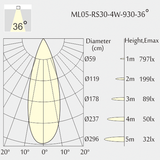 Ángulo de luz: 36°