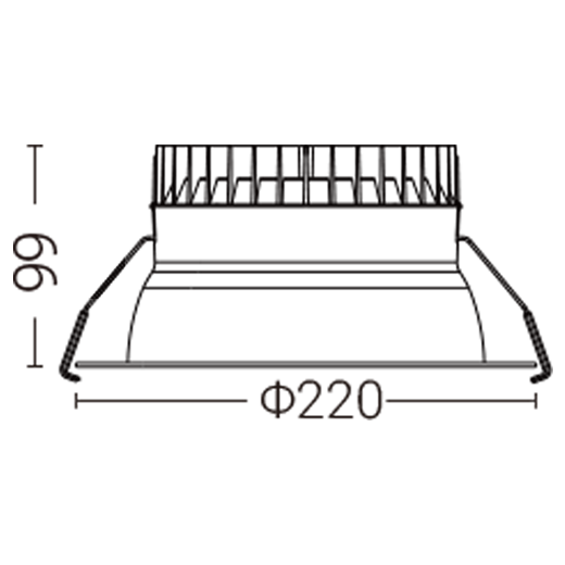 Downlight empotrable redondo de carcasa de plástico con acabado pintado negro (RAL 9005) y reflector negro; potencia del sistema 33W; medidas Ø220mm x 106mm; recorte de techo de Ø175mm-Ø200mm con embellecedor de montaje; espesor del techo 2-65mm; CCT 3000K con un flujo luminoso del sistema de 4350lm; reproducción cromática con un índice CRI80; tras una vida útil de 50000h L80B10 min. 80% del flujo luminoso con chips LED de alta eficiencia energética; 5 años de garantía; característica del haz con un ángulo de 60°; iluminación perfectamente adecuada para leer, escribir y trabajar con ordenadores y controles según DIN EN 12464-1 (UGR<19); grado de protección de la carcasa según DIN EN 60529 (IP54); fuente de luz sustituible por un electricista cualificado; controlador LED sustituible por un electricista cualificado.