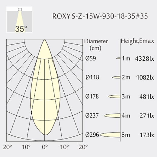 Ángulo de luz: 18°-35°