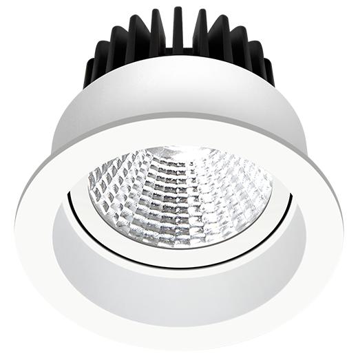 Downlight empotrable de techo redondo de aluminio fundido a presión con acabado de pintura en polvo blanca (RAL 9016) y reflector blanco; controlador Phase Dim; potencia del sistema 11W; medida Ø82mm; recorte de techo de Ø70mm con un embellecedor de montaje estrecho; la altura de la luminaria es de 64mm; pivote max. 30°; CCT 2700K con un flujo luminoso del sistema de 700lm; alta reproducción cromática con un índice CRI90; tras una vida útil de 50000h L80B10 min. 80% del flujo luminoso con chips LED BRIDGELUX de bajo consumo; 5 años de garantía; característica de haz medio con un ángulo de haz de 38°; iluminación perfectamente adecuada para leer, escribir, así como para trabajos de ordenador y control con UGR<19; grado de protección de la carcasa IP44 en la parte visible del producto una vez instalado; fuente de luz sustituible por un electricista cualificado; driver sustituible por un electricista cualificado.