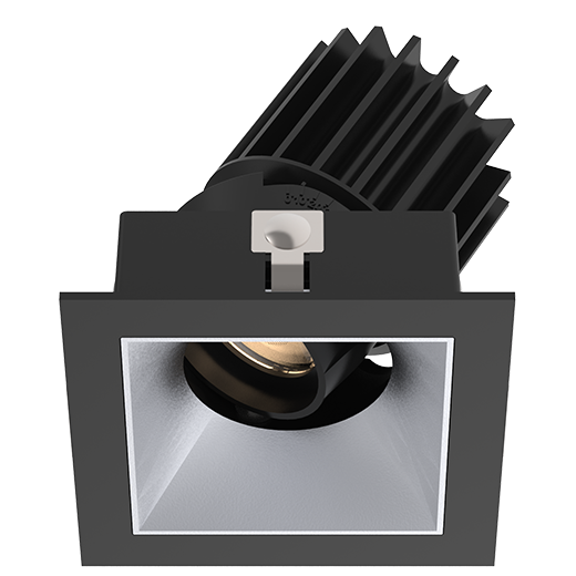 Downlight cuadrado empotrado en el techo de aluminio fundido a presión con acabado de pintura en polvo Negro (RAL 9005) y reflector Mate; LED 4W; medida 55mm x 55mm; recorte de techo de 45mm x 45mm con un embellecedor de montaje estrecho; el peso de la luminaria es de aproximadamente 90g; CCT 2700K con una potencia LED de 480lm; alta reproducción cromática con un índice CRI90; tras una vida útil de 50000h min. 80% del flujo luminoso con chips LED CREE energéticamente eficientes; 5 años de garantía; característica de haz estrecho con un ángulo de haz de 18°; iluminación perfectamente adecuada para leer, escribir, así como para trabajar con ordenadores y controles según DIN EN 12464-1 (UGR<19); grado de protección de la carcasa según DIN EN 60529 (IP20)