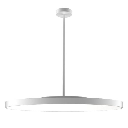 Luminaria de suspensión de barra redonda con cubierta microprismática para una menor luminancia con Uplight de aluminio fundido a presión con acabado de pintura en polvo blanco (RAL 9016); controlador ON-OFF; LED 60W/25W; medida Ø900mm; el peso de la luminaria es de aproximadamente 11850g; CCT 2700K con un flujo luminoso del sistema de 7500lm/2200lm; reproducción cromática con un índice CRI80; tras una vida útil de 50000h min. 80% del flujo luminoso con chips LED energéticamente eficientes; 5 años de garantía; característica de haz con ángulo de haz de 90°/110°; iluminación perfectamente adecuada para leer, escribir, así como para trabajos de ordenador y control según DIN EN 12464-1 (UGR<19); grado de protección de la carcasa según DIN EN 60529 (IP40)