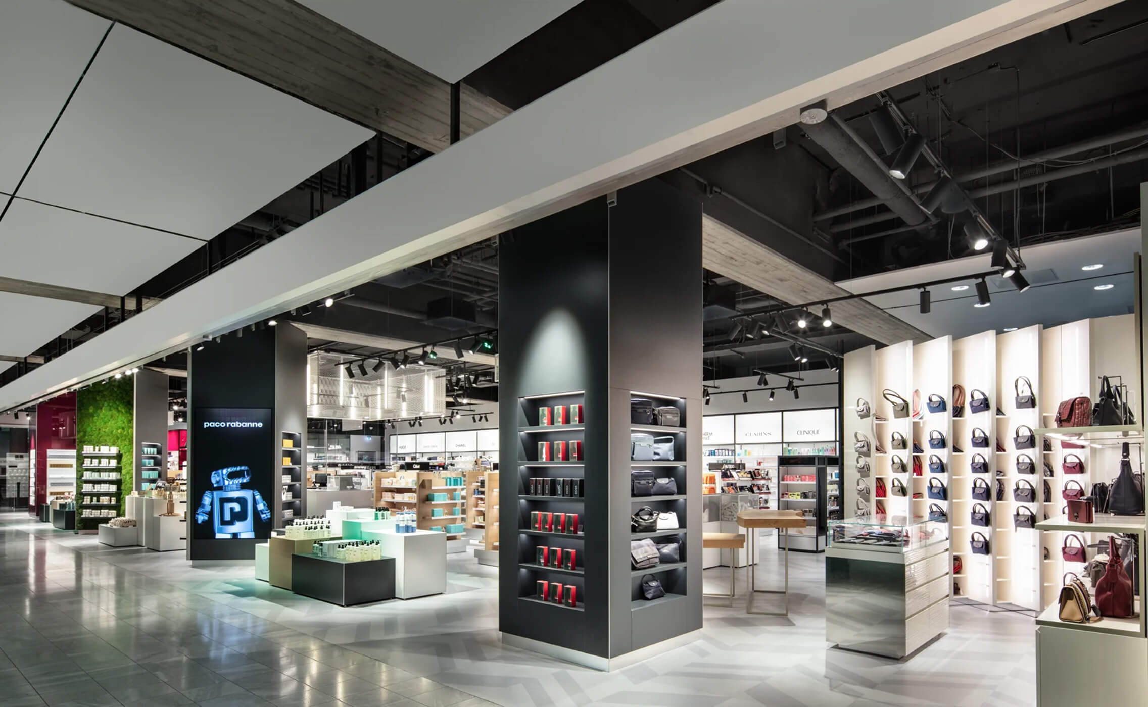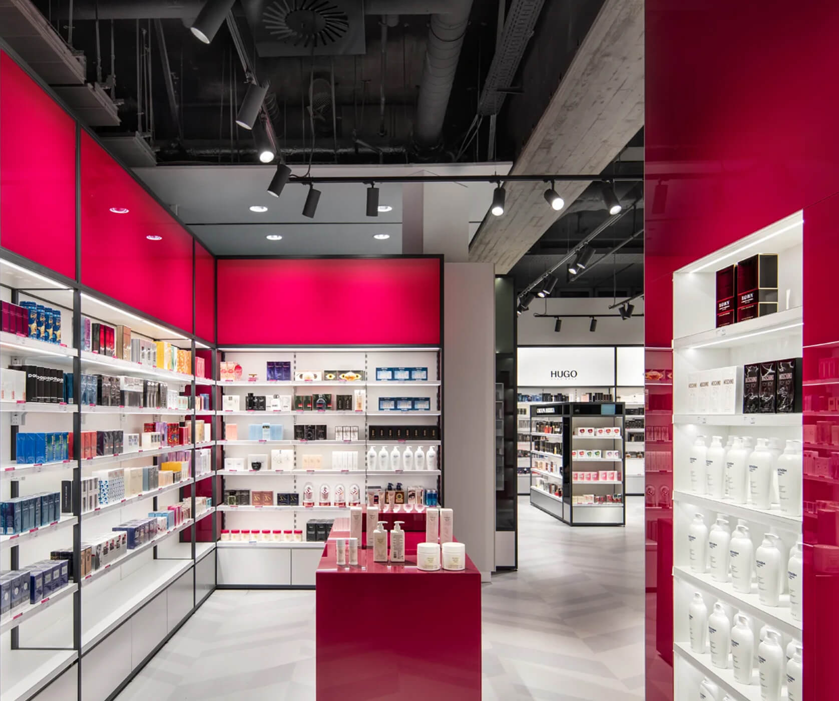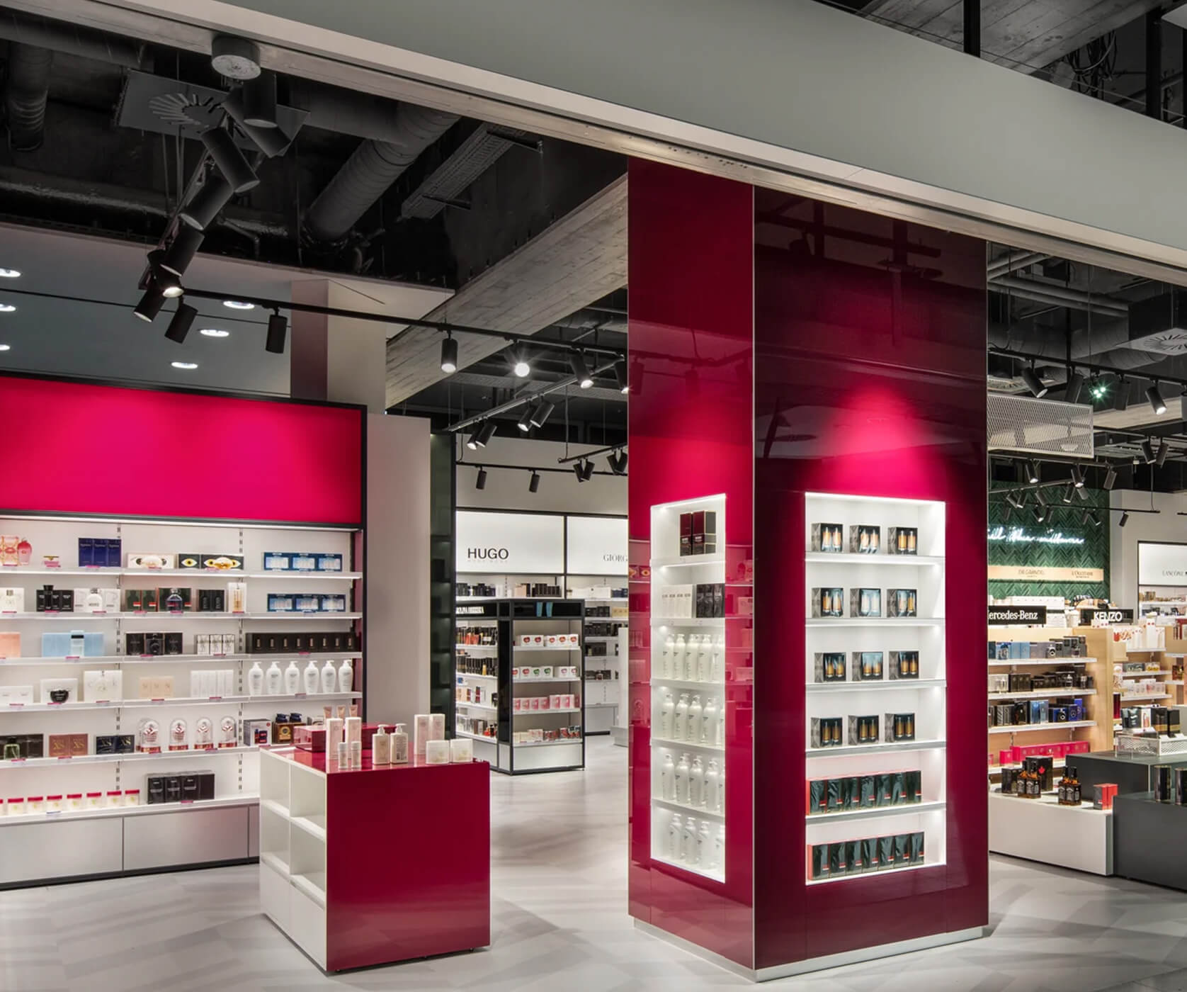 Los proyectores PURE M tienen un excelente control del deslumbramiento: proporcionan la luz adecuada para la experiencia de compra del cliente con productos cosméticos de marca como Versace, Dolce & Gabbana, Paco Rabanne.
