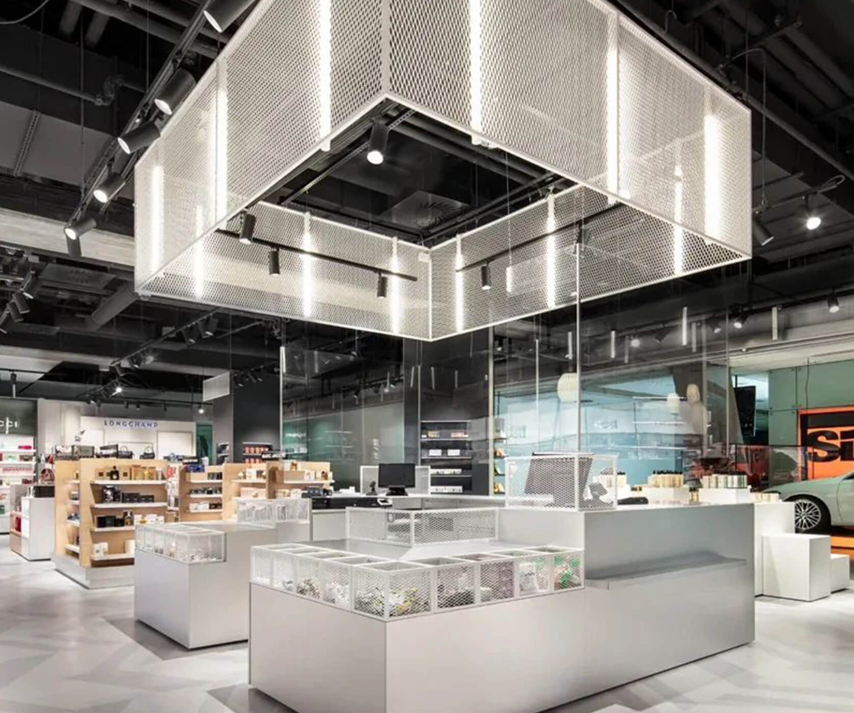 Dittel Architects fue el encargado de desarrollar y diseñar el espacio comercial de 320 m2 y explicó su concepto de la siguiente manera: «El concepto general está dominado por líneas blancas y claras y superficies hechas de madera de arce claro, que contrastan con elementos oscuros, antracita y blancos».
