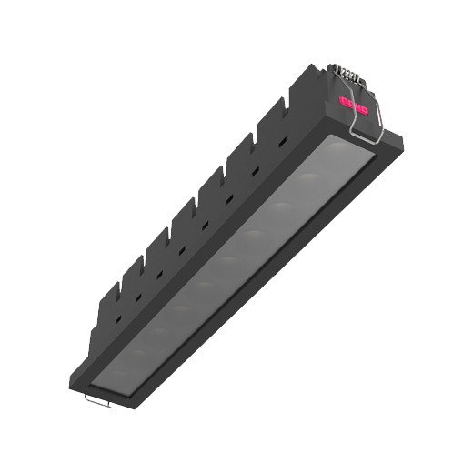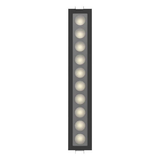 Downlight Carré en aluminium moulé; finition thermolaquée noir (RAL 9005) et réflecteur noir; LED 22W; dimensions 295mm x 50mm; cadre avec une découpe de 286mm x 37mm; Température de couleur 4000K avec une sortie LED de 2800lm; bon indice de rendu des couleurs IRC80; après une durée de vie de 50000h min. 80% du flux lumineux avec des LED OSRAM écoénergétiques; Garantie 5 ans; angle de faisceau précis de 35°; éclairage parfaitement adapté à la lecture, écriture ainsi que travaux informatiques et de contrôle selon DIN EN 12464-1 (UGR <10); degré de protection du boîtier selon DIN EN 60529 (IP65)
