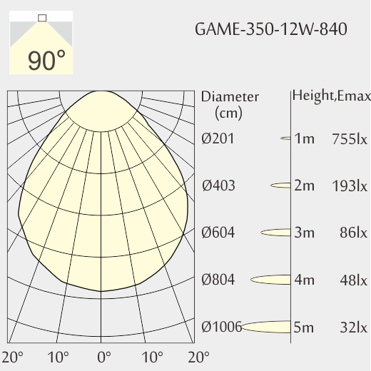 Faisceau d'angle: 90°