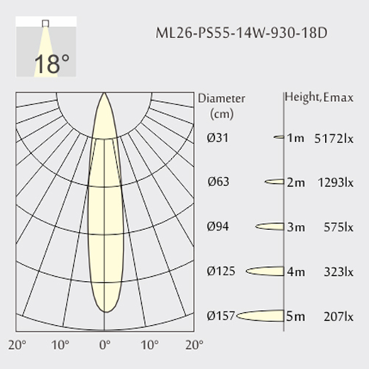 Faisceau d'angle: 18°