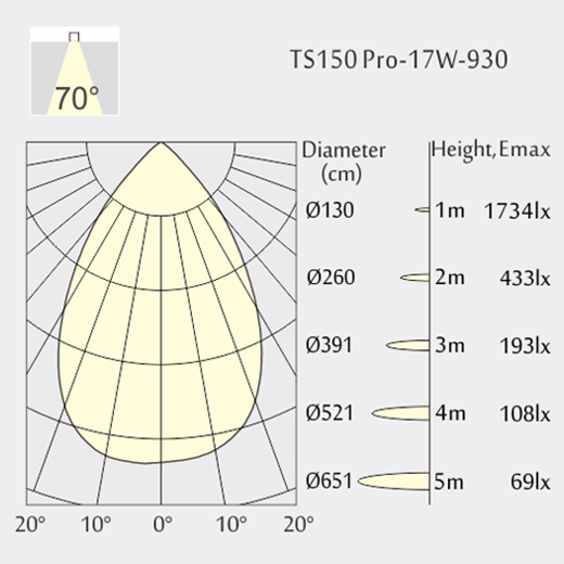 Faisceau d'angle: 70°