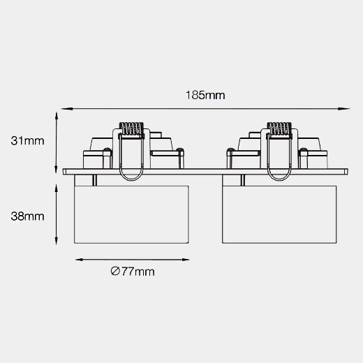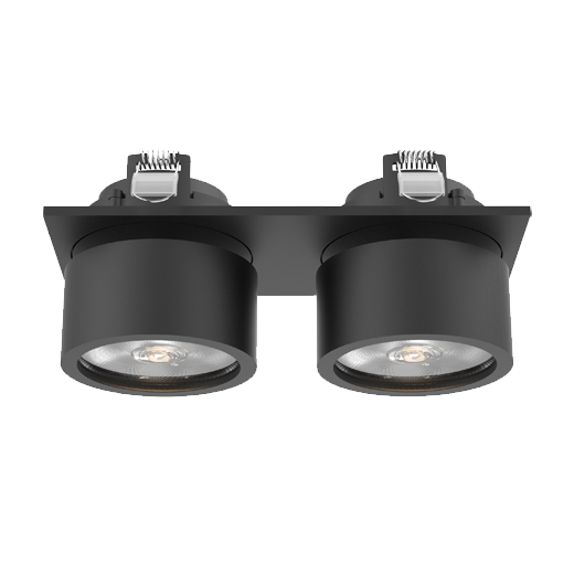 Double Spot encastré en aluminium moulé ; finition thermolaquée noir (RAL 9005) ; Driver Phase Dim inclus dans la base de montage ; Puissance Système 28W ; tension nominale primaire 220-240V ~50/60Hz ; dimensions par spot Ø77mm x 38mm ; dimensions base de montage 185mm x 85mm x 31mm ; cadre avec une découpe de 172mm x 75mm ; orientable à 360° et pivotant à 90° ; Température de couleur 3000K avec un Flux lumineux de 2400lm ; indice de rendu des couleurs élevé IRC90 ; après une durée de vie de 50000h L80B10 min. 80% du flux lumineux avec des LED CITIZEN écoénergétiques ; Garantie 5 ans ; angle de faisceau de 36° ; degré de protection du boîtier IP20 ; source lumineuse remplaçable par un électricien qualifié ; convertisseur remplaçable par un électricien qualifié