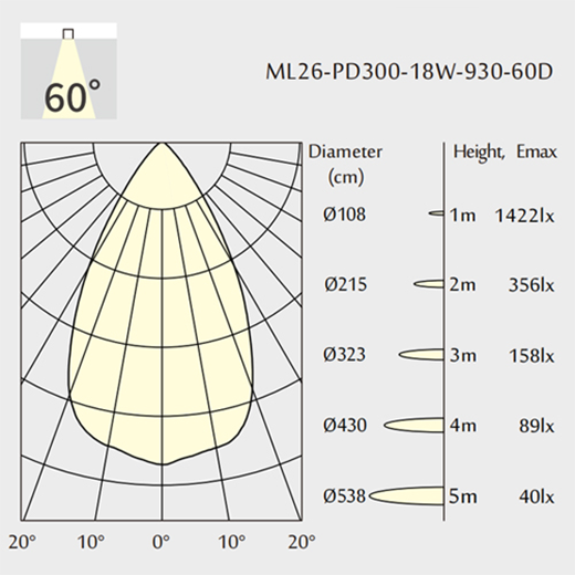 Faisceau d'angle: 60°
