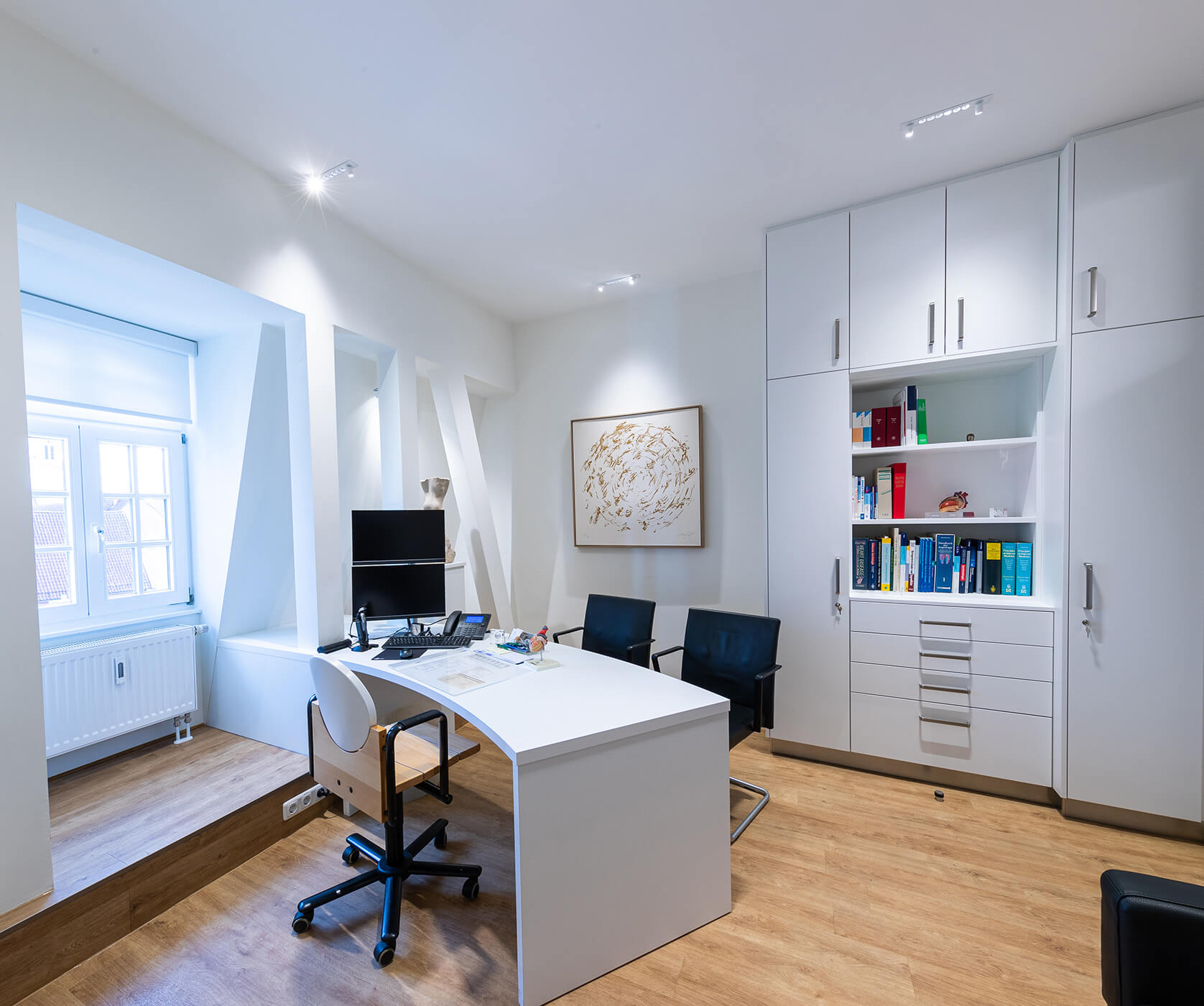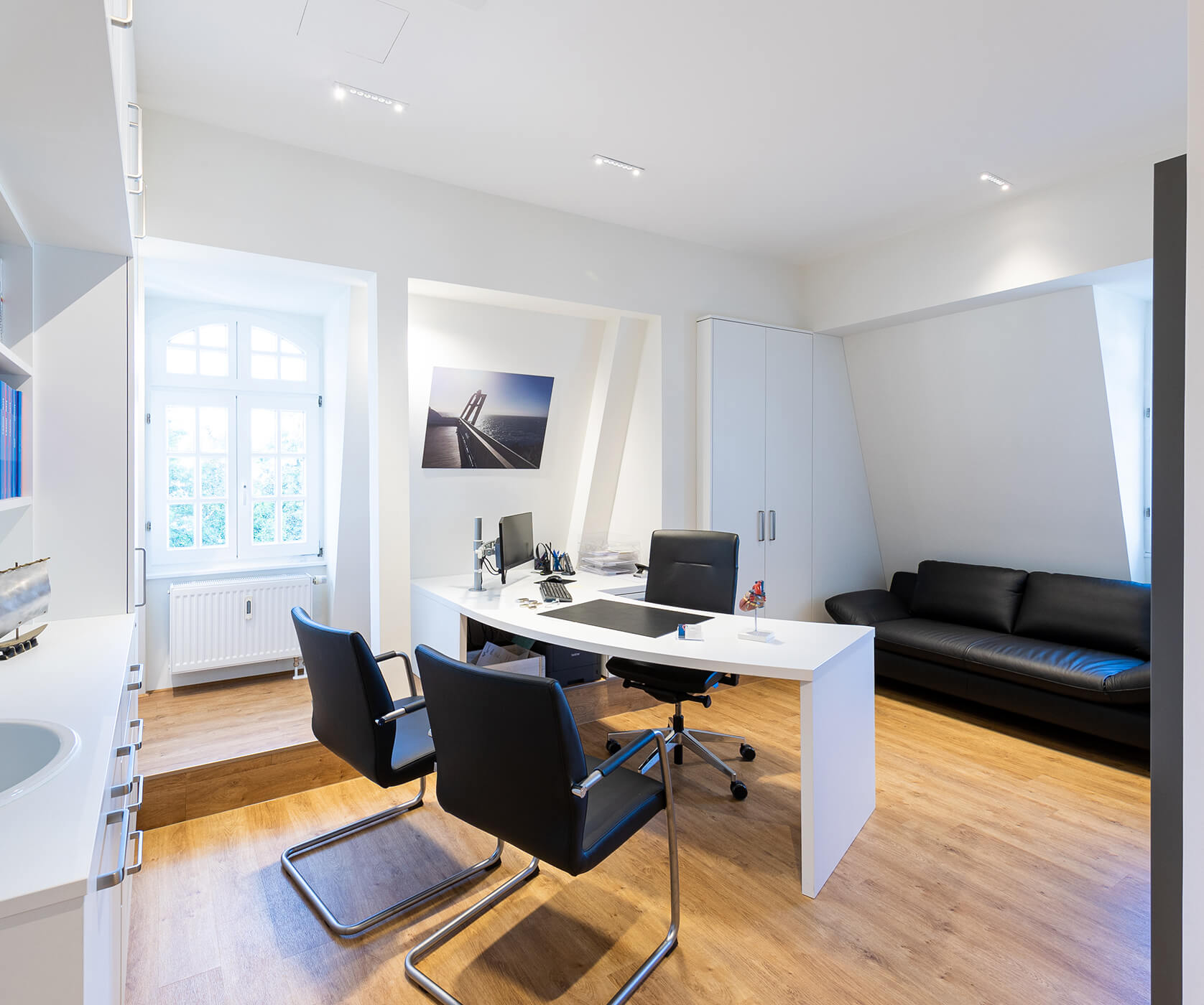 L‘éclairage de ce cabinet médical situé à Celle en Basse-Saxe (Allemagne) fait parfaitement écho à l’architecture intérieure. Il a été conçu avec les produits de notre série FUSION dont le design minimaliste s’intègre élégamment dans le plafond, sans perturber l’ambiance des espaces.