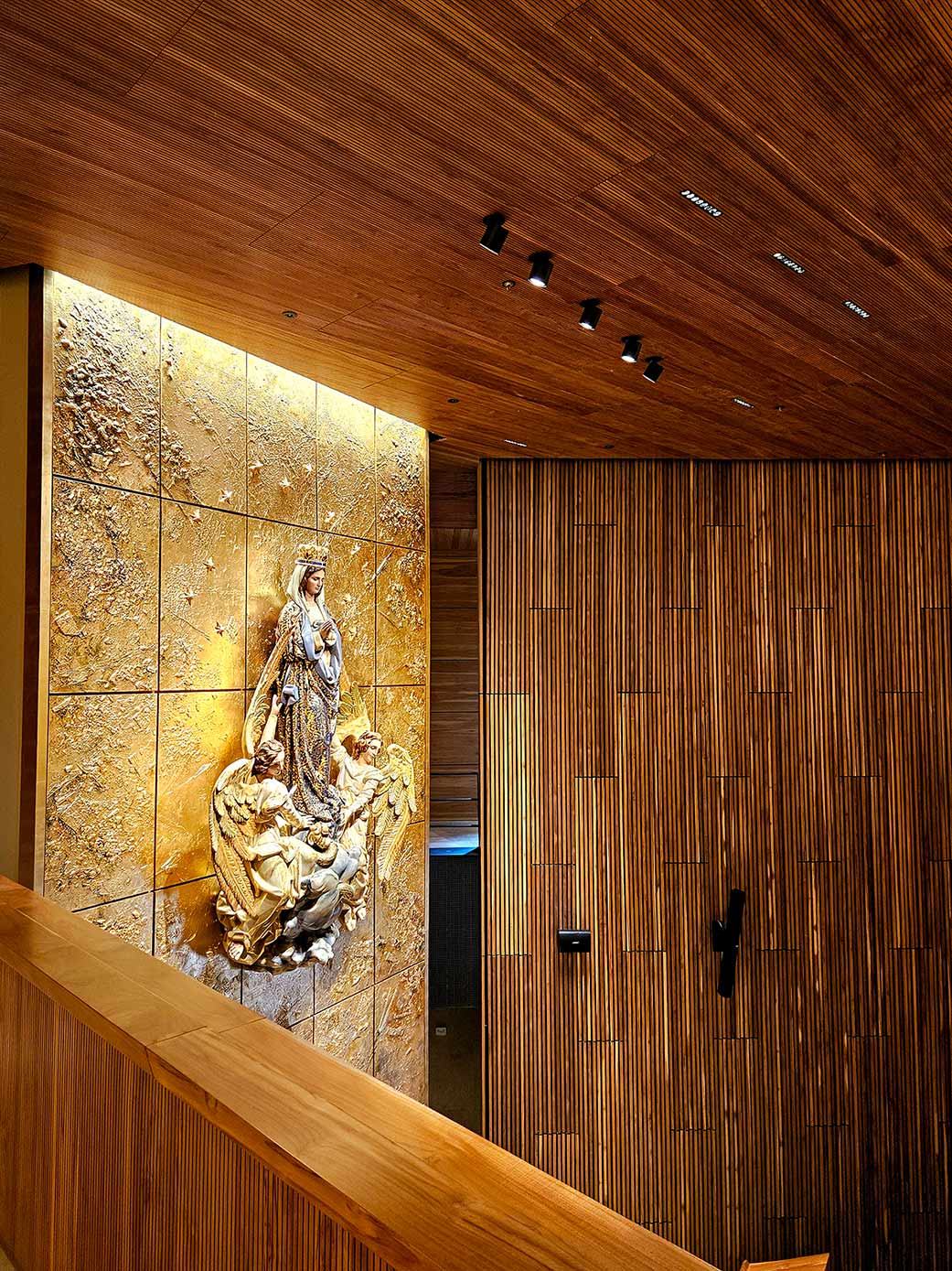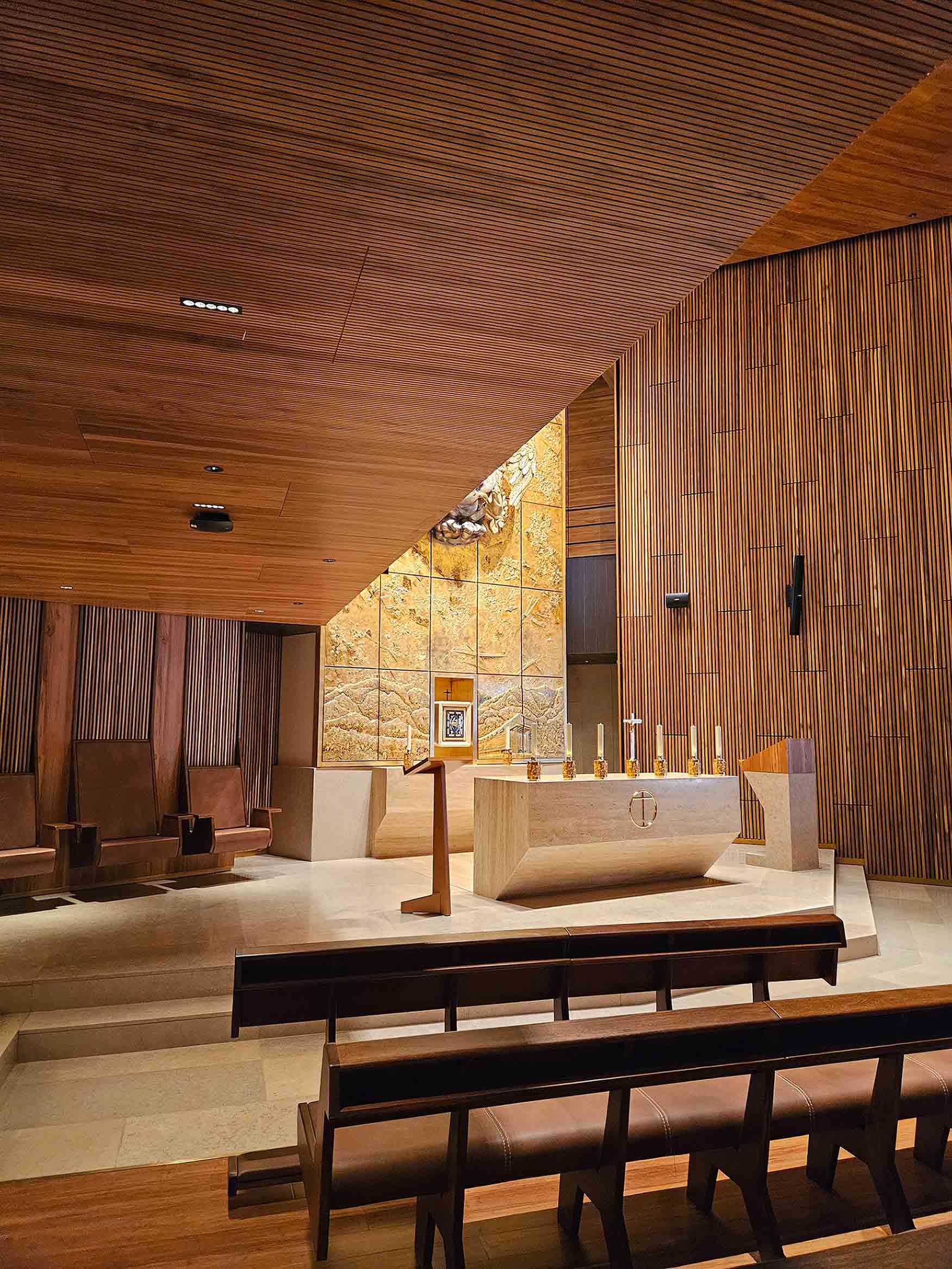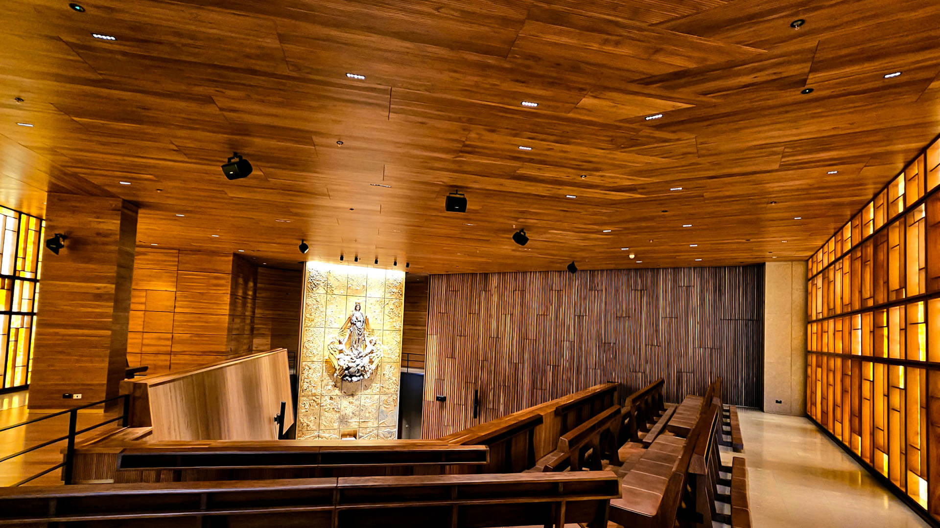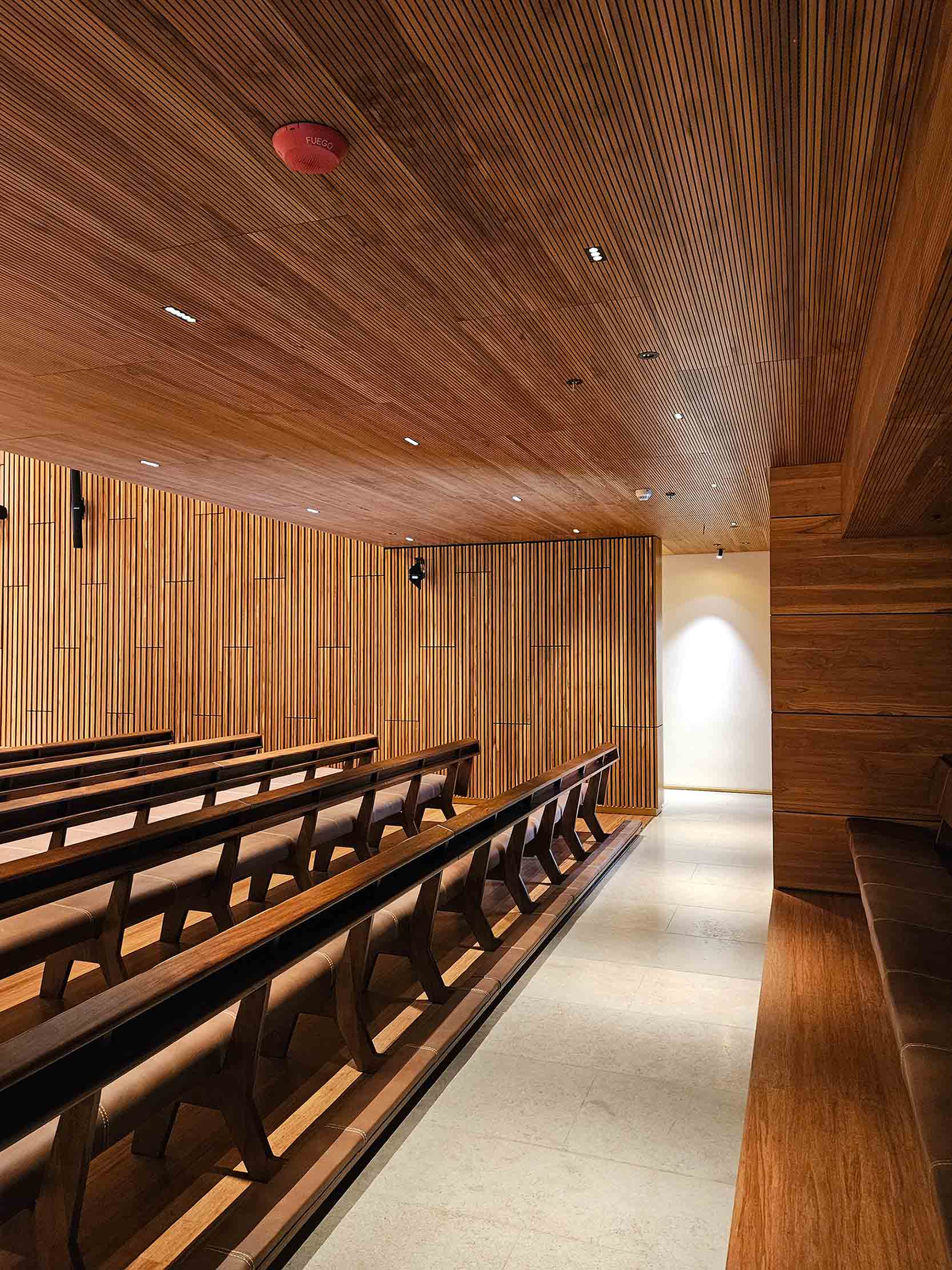 L’ensemble du projet a été conçu pour que la lumière soit axée sur la mise en valeur de l’art de l’oratoire de l’université de La Sabana. Pour ce faire, il fallait des luminaires aux angles très précis, peu éblouissants et de petites dimensions, afin de pouvoir jouer avec les structures en bois qui composent le projet.