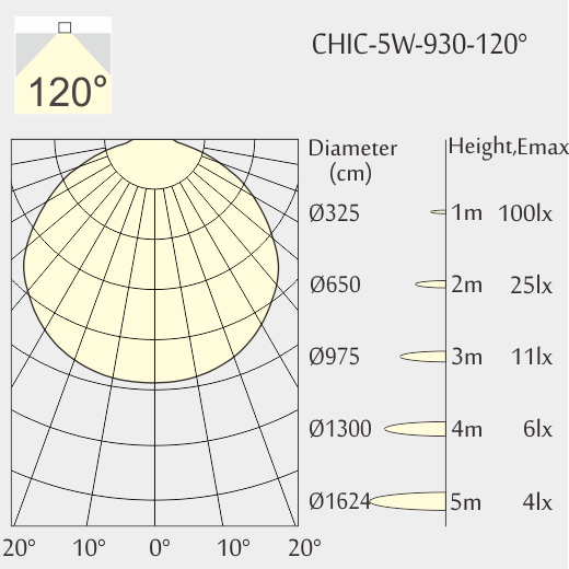 Apertura fascio: 120°