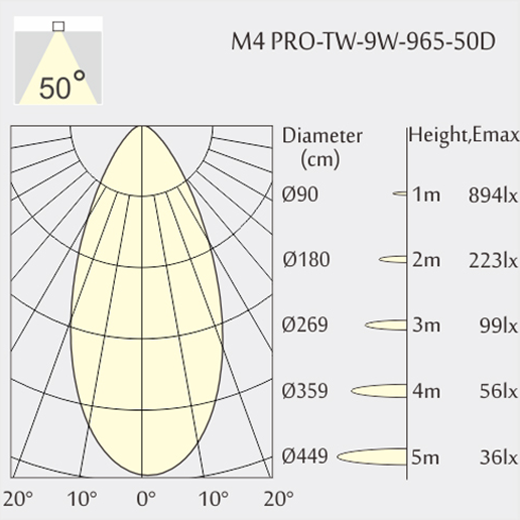 Apertura fascio: 50°