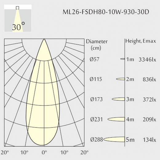 Apertura fascio: 30°