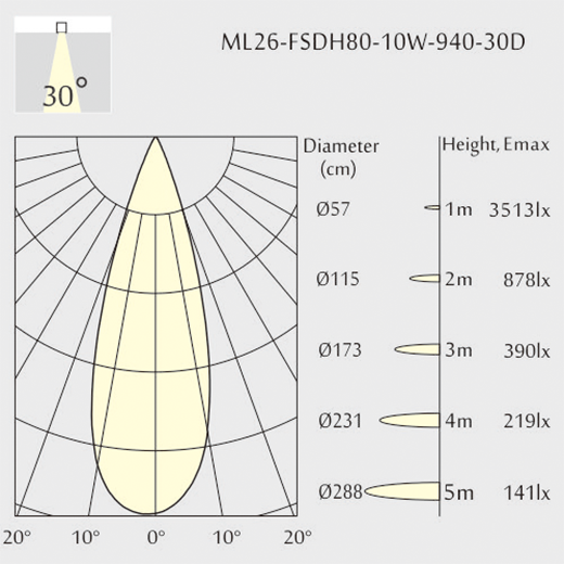 Apertura fascio: 30°