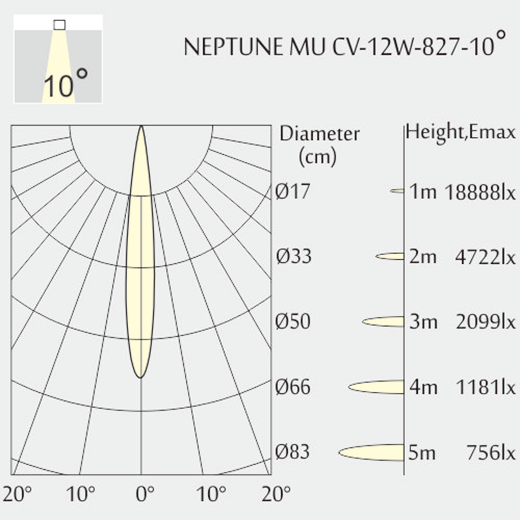 Proiettore rotondo in alluminio; è necessario un driver LED esterno da 24VDC; compatibile con driver LED remoto On-Off/ Phase Dim/ 1-10V Dim/ DALI Dim, gamma di regolazione: 5%-100%; grigio scuro (RAL 7024); rivestimento a triplo strato per un’elevata resistenza alla corrosione e ai raggi UV; rivestimento a conversione chimica sulla superficie dell’alluminio seguito da un primo strato di anodizzazione; secondo strato di vernice epossidica; terzo strato di polvere di poliestere; test in nebbia salina superato per oltre 1000 ore; potenza di sistema 12W; dimensioni Ø84mm x 117mm; peso dell’apparecchio di circa 1150g; CCT 2700K con una resa di sistema di 800lm; discreta resa cromatica con un indice CRI80; dopo una durata di 50000h L80B10 min. 80% del flusso luminoso con chip LED CREE ad alta efficienza energetica; 5 anni di garanzia; caratteristica del fascio di luce con angolo di apertura di 10°; UGR<19; grado di protezione dell'alloggiamento IP67; sorgente luminosa sostituibile da un elettricista qualificato; driver sostituibile da un elettricista qualificato; picchetto di montaggio incluso
