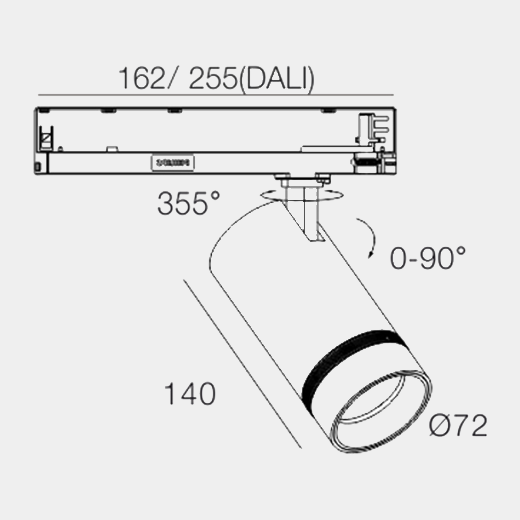 Faretto a binario in estrusione alluminio con finitura verniciata a polvere nero (RAL 9005) e riflettore nero; LED 13W, dimensioni Ø72mm; lunghezza faretti a binario 140mm; lunghezza adattatori a binario 162mm; peso dell’apparecchio circa 600g; rotazione 355° e perno max. 90°; CCT 2700K con un’uscita LED di 1500lm; con driver ON-OFF; discreta resa cromatica con un indice di CRI80; dopo una durata di 50000h min. l’80% del flusso luminoso con chip LED CITIZEN a basso consumo energetico; 5 anni di garanzia; caratteristica del fascio regolabile con angolo di emissione 18°-35°; illuminazione perfettamente adatta per lettura, scrittura e lavoro al computer e di controllo secondo DIN EN 12464-1 (UGR<19); grado di protezione dell'alloggiamento secondo DIN EN 60529 (IP20); Compatibile con il sistema di binari a 3 circuiti GLOBAL/ POWERGEAR