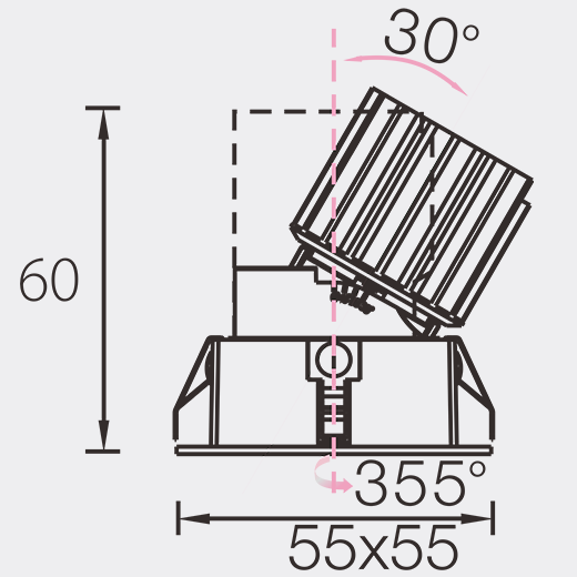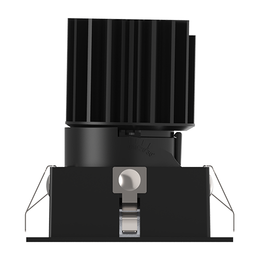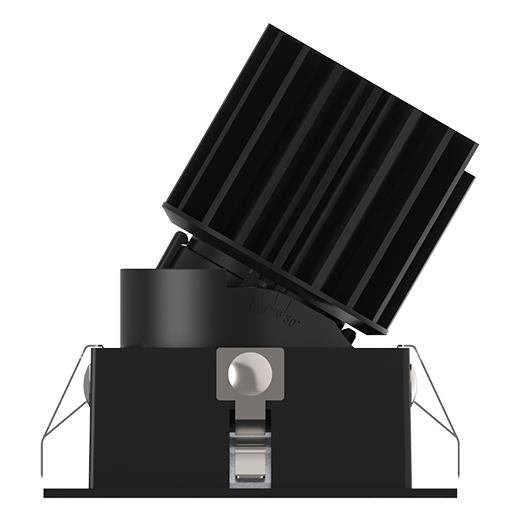Downlight quadrato da incasso a soffitto in alluminio pressofuso con verniciatura a polvere nero (RAL 9005) e riflettore opaco; LED da 4W; misura 55mm x 55mm; ritaglio a soffitto di 45mm x 45mm con un bordo di montaggio stretto; il peso dell’apparecchio è di circa 90g; CCT 2700K con una potenza LED di 480lm; elevata resa cromatica con un indice CRI90; dopo una durata di 50000h min. 80% del flusso luminoso con chip LED CREE ad alta efficienza energetica; 5 anni di garanzia; caratteristica del fascio stretto con angolo di emissione di 18°; illuminazione perfettamente adatta per la lettura, la scrittura, il lavoro al computer e il controllo secondo DIN EN 12464-1 (UGR<19); grado di protezione dell'alloggiamento secondo DIN EN 60529 (IP20)